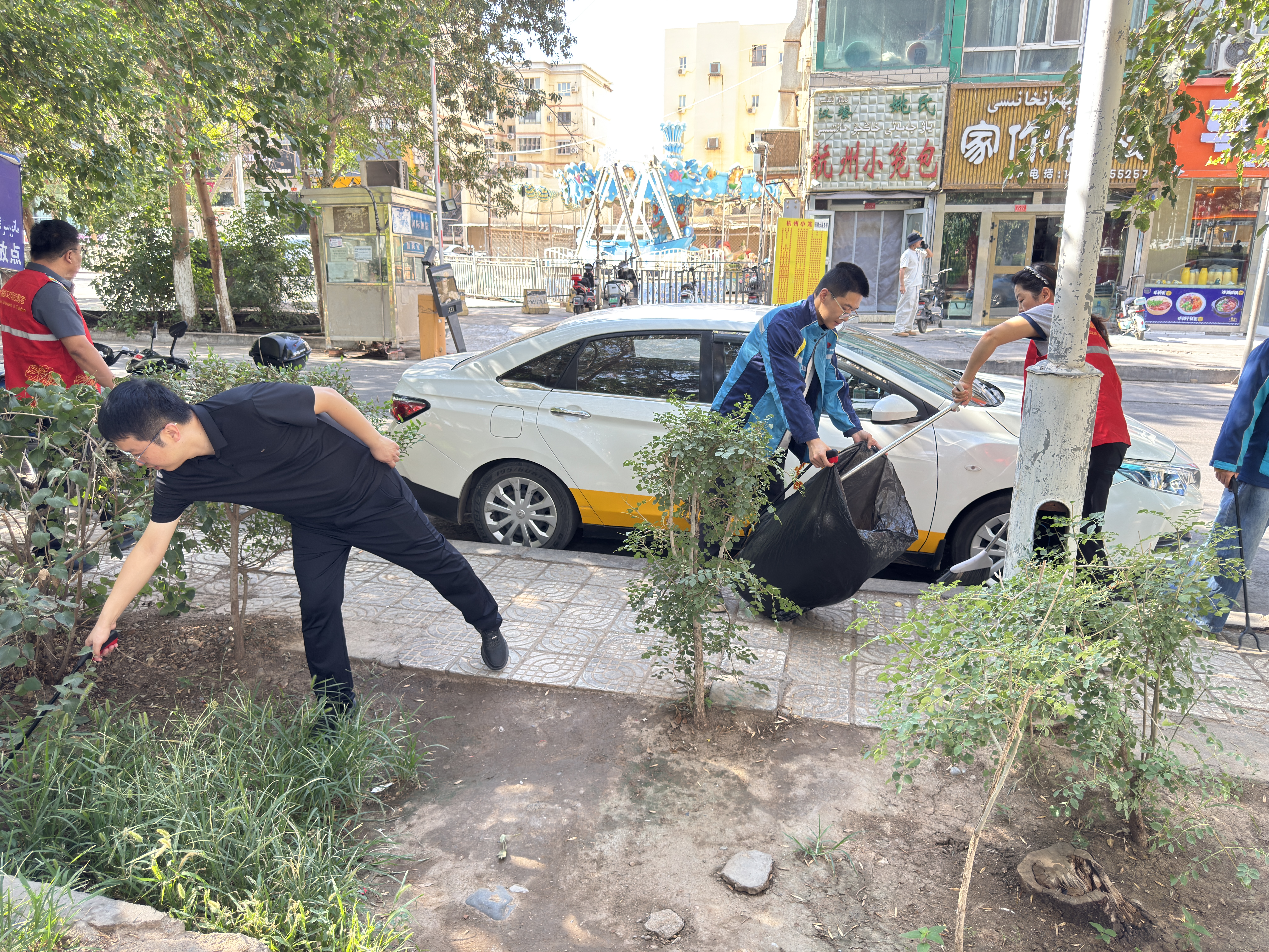 活動中,全體職工分工協(xié)作、默契配合,手持掃帚、垃圾鉗等清潔工具,對項(xiàng)目周邊綠化帶及主要通行道路展開了全面清掃。一部分人細(xì)致清掃地面落葉與雜物,一部分人認(rèn)真擦拭宣傳欄、扶手等公共設(shè)施,還有專人負(fù)責(zé)收集和清運(yùn)積存垃圾,并對平日易忽略的衛(wèi)生死角進(jìn)行徹底清理。現(xiàn)場氣氛熱烈,忙碌中不失條理,高溫下更顯擔(dān)當(dāng)。