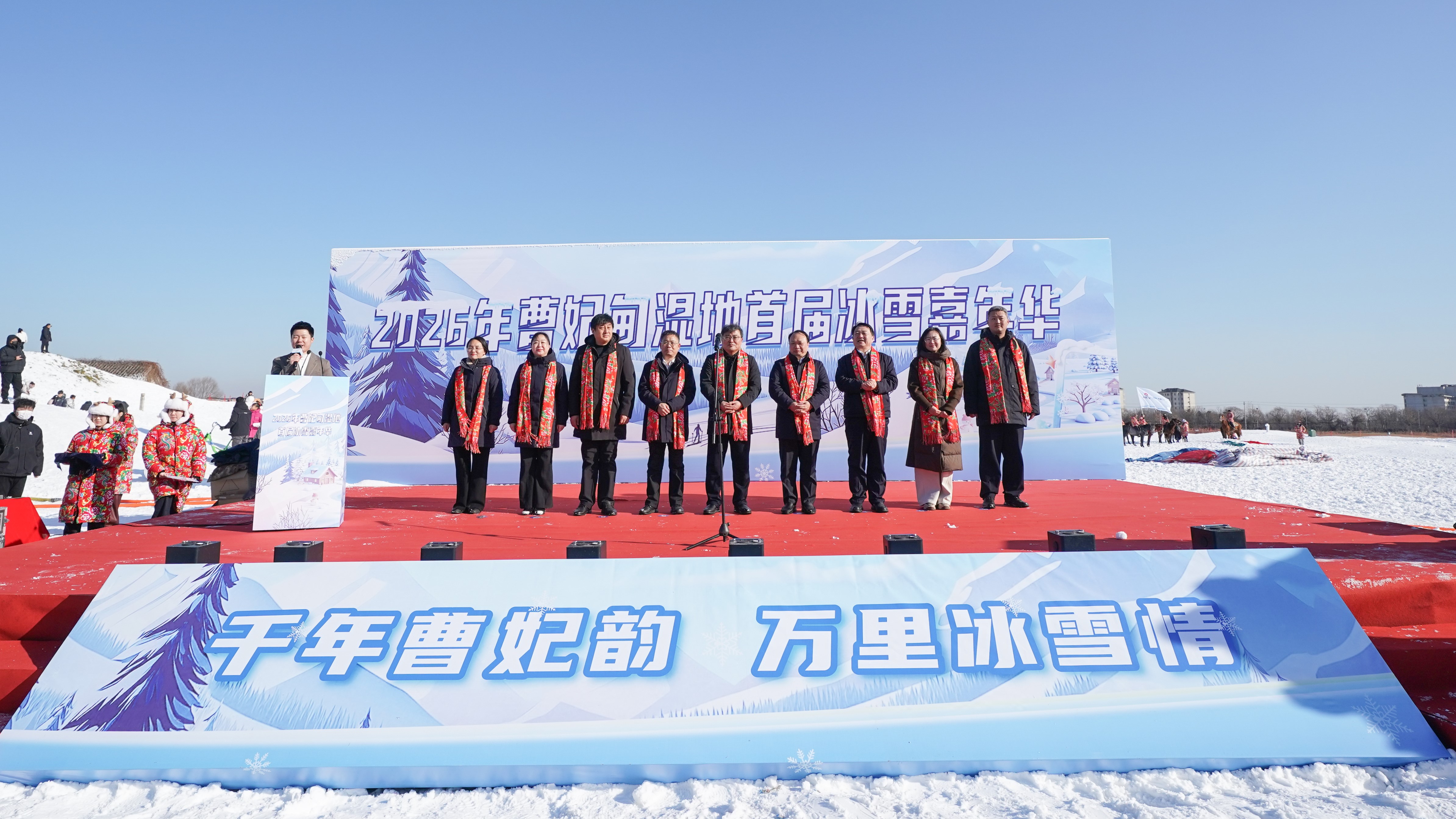 1月1日,中國(guó)二十二冶2026曹妃甸濕地首屆冰雪嘉年華盛大啟幕。曹妃甸區(qū)政協(xié)黨組書(shū)記、新城管理辦公室黨委書(shū)記周永山,曹妃甸區(qū)教育體育局副局長(zhǎng)丁國(guó)強(qiáng),曹妃甸區(qū)文化廣電和旅游局副局長(zhǎng)孫碩,曹妃甸區(qū)新城旅游服務(wù)中心主任劉杰,中國(guó)二十二冶黨委書(shū)記、董事長(zhǎng)袁斯浪,副總會(huì)計(jì)師姚信福,工會(huì)主席劉維棟,工會(huì)副主席、黨群工作部部長(zhǎng)趙曉暉,金熊置業(yè)黨支部書(shū)記、董事長(zhǎng)馬健,以及來(lái)自京津冀上千名冰雪運(yùn)動(dòng)愛(ài)好者,齊聚曹妃甸濕地運(yùn)動(dòng)公園,感受冬季暖陽(yáng)與冰雪的激情碰撞,共赴一場(chǎng)熱血與浪漫交織的冰雪之約。